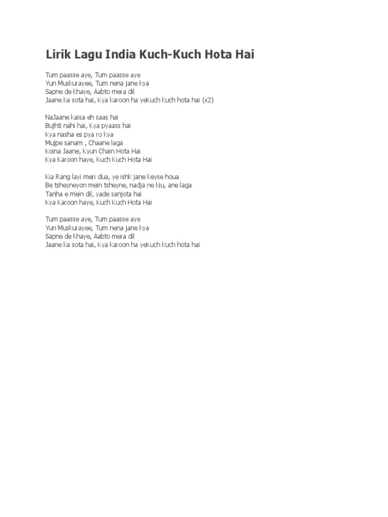 Lirik Lagu Dan Terjemahan Kuch Kuch Hota Hai Udit Narayan Dan Alka Yagn Wattpad